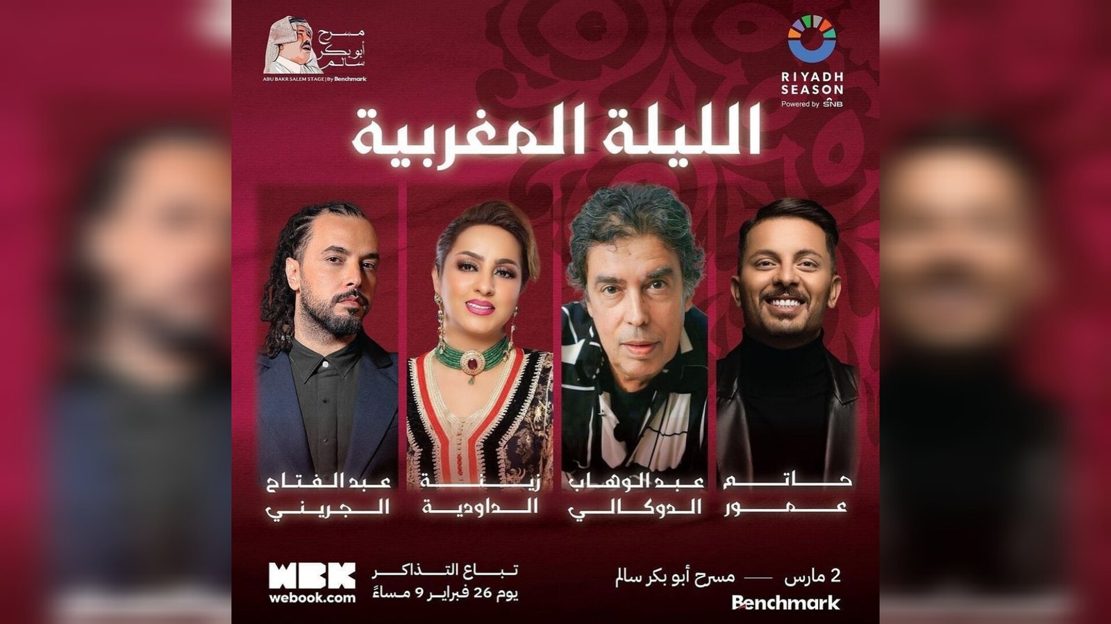 و سيقام الحفل في الثاني من مارس/ آذار المقبل على مسرح أبو بكر سالم، و ذلك بمشاركة النجوم عبد الوهاب الدوكالي، حاتم عمور، زينة الداودية و الجريني.