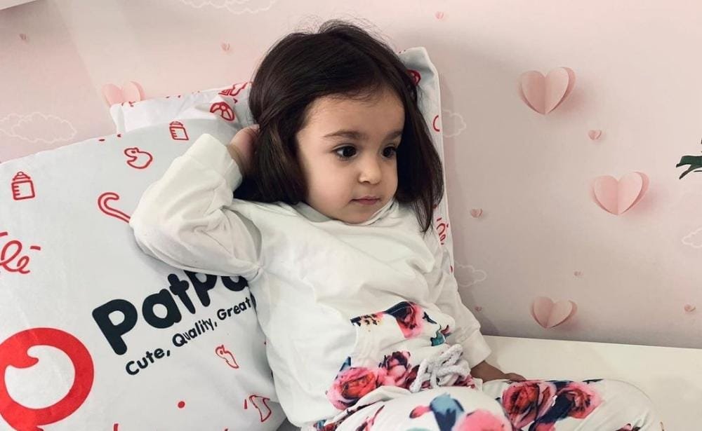 وصورة أخرى عليها قائلة: “She is in love with her hello kitty thanks for PatPat for the lovely Pijama and Pillows – use celia15 for 15% discount.