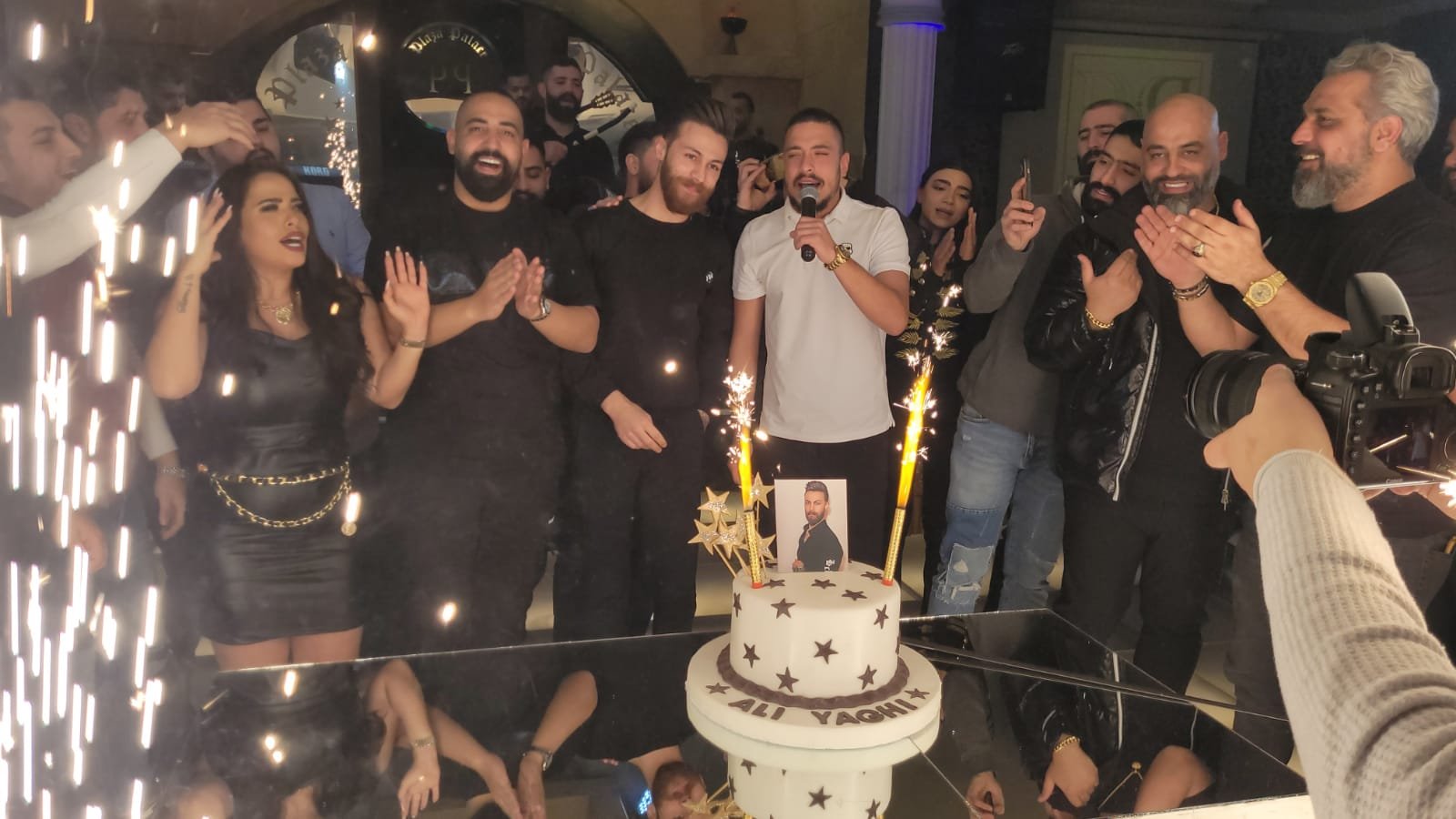 في نهاية السهرة إجتمعوا أصدقاء وائل حول قالب الحلوة مهنئينه بعيده .