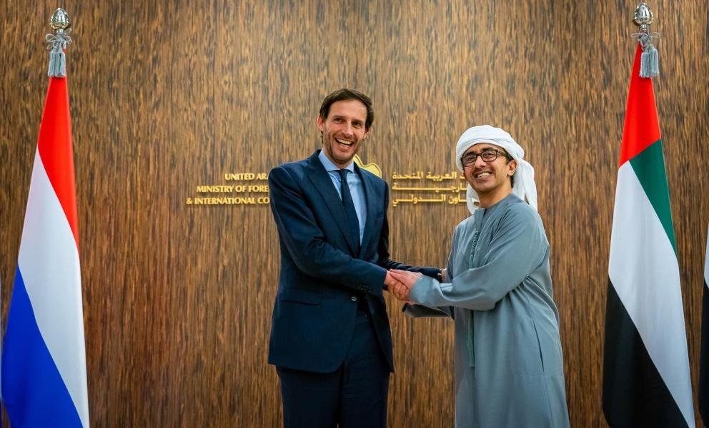 وشدد الوزيران على أن “الحفاظ على الأمن والازدهار المستقبلي لبلديهما وشعبيهما يعد أحد الأهداف المحورية والرئيسية للعلاقة بين الإمارات العربية المتحدة ومملكة هولندا، التي تؤمن بالتعددية والتعاون الدولي”.